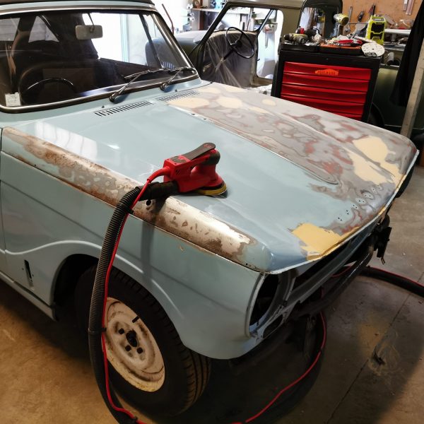 Reprise peinture masque avant Navigation albumPrécédent Album précédent :JAGUAR TYPE E S2SuivantAlbum suivant :MG B ROADSTER MK2