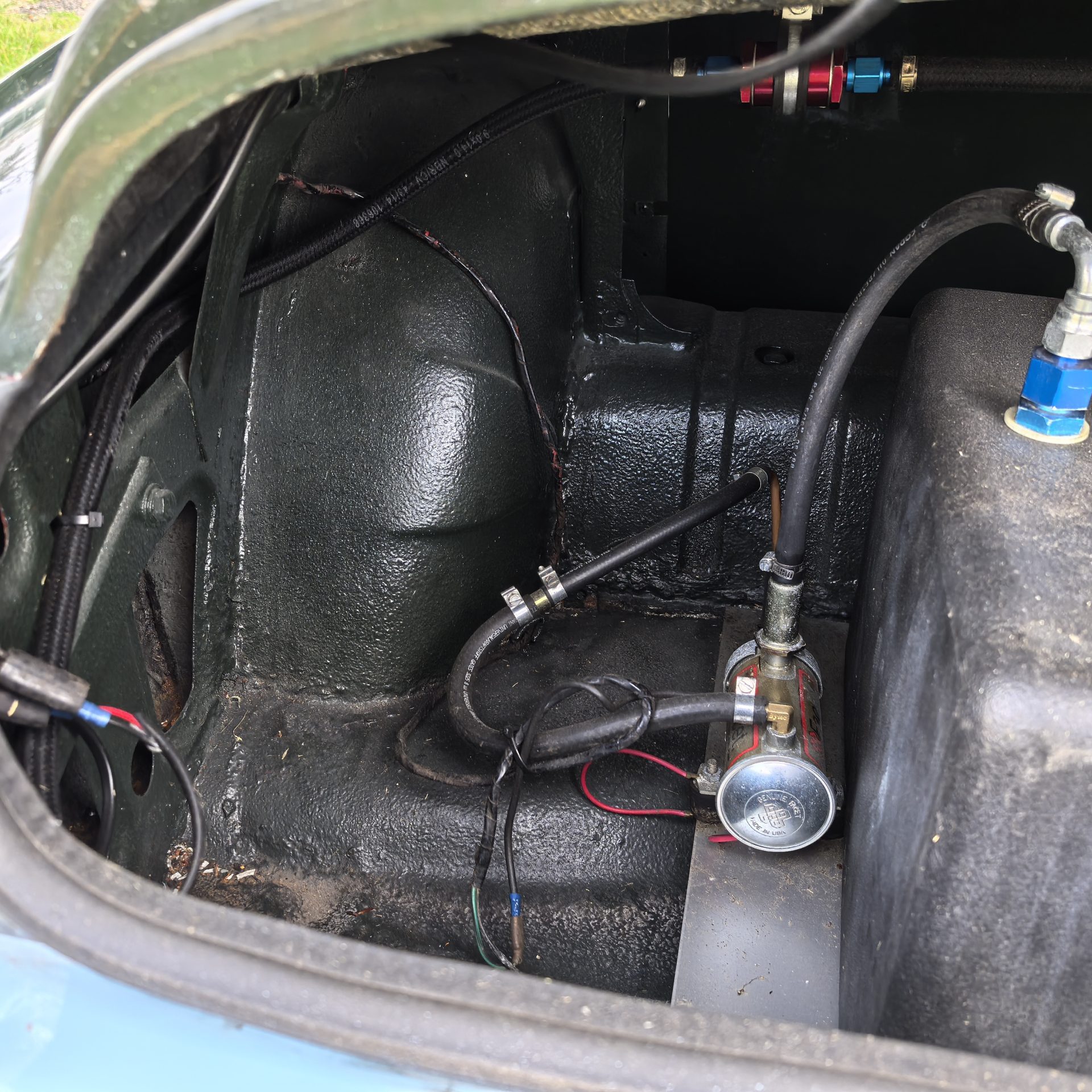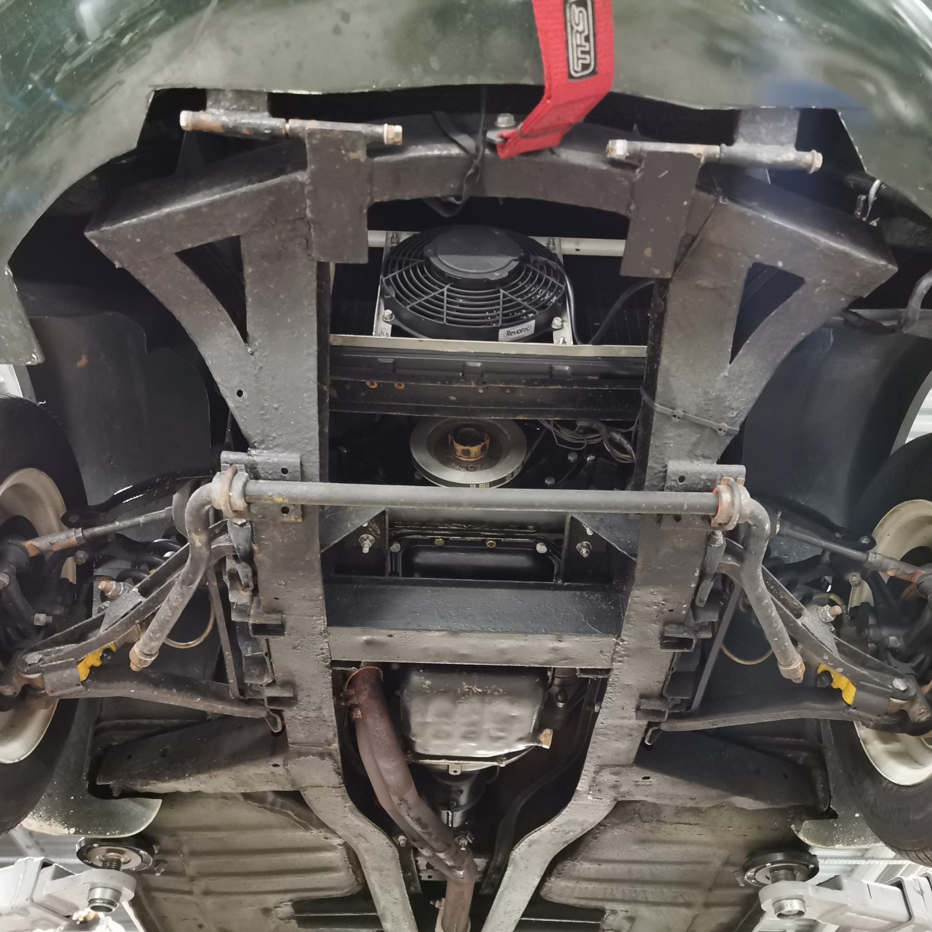 Moteur préparé, 4 cylindres 1320 cm3 alimenté par 2 carburateurs Weber de 40 (fiche de puissance à 103 CV révisé en 2018)