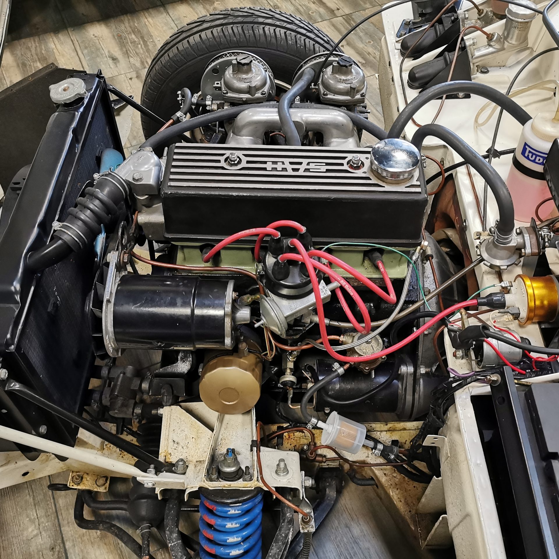 Moteur 4 cylindres 1296 cm3 alimenté par 2 carburateurs Stromberg